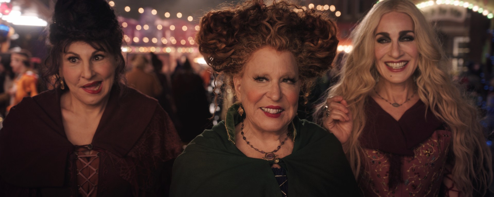 Image 3: Kathy Najimy as Mary Sanderson, Bette Midler as Winifred Sanderson, and Sarah Jessica Parker as Sarah Sanderson in Disney’s live-action HOCUS POCUS 2, exclusively on Disney+. Photo by Matt Kennedy. © 2022 Disney Enterprises, Inc. All Rights Reserved.